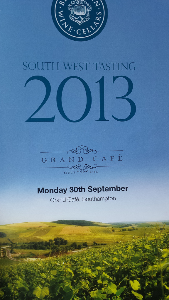 Late last month I had the opportunity to attend Berkmann Wine Cellars South West Wine Tasting 2013 at The Grand Café in Southampton, Hampshire. It is always a pleasant surprise when one of the larger suppliers remembers their customers out in the sticks and that not everyone is based within few miles of central London. Would I have traveled into London for this tasting? No, probably not. But I am of the mind that, if someone is going to put on a regional wine tasting then it is only polite that us local wine merchants, restaurateurs, sommeliers etc. should attend. It must be working well for Berkmann because this was their third event (which they organise every two years) and it seemed pretty well attended. So, I am afraid that any customers coming to visit the Fareham Wine Cellar on Monday 30th would have found it closed, sorry!!