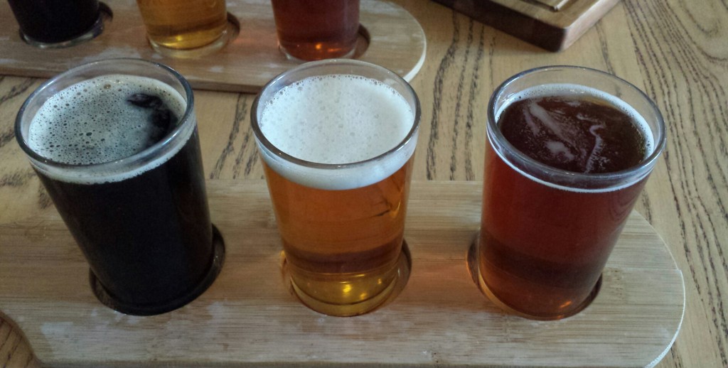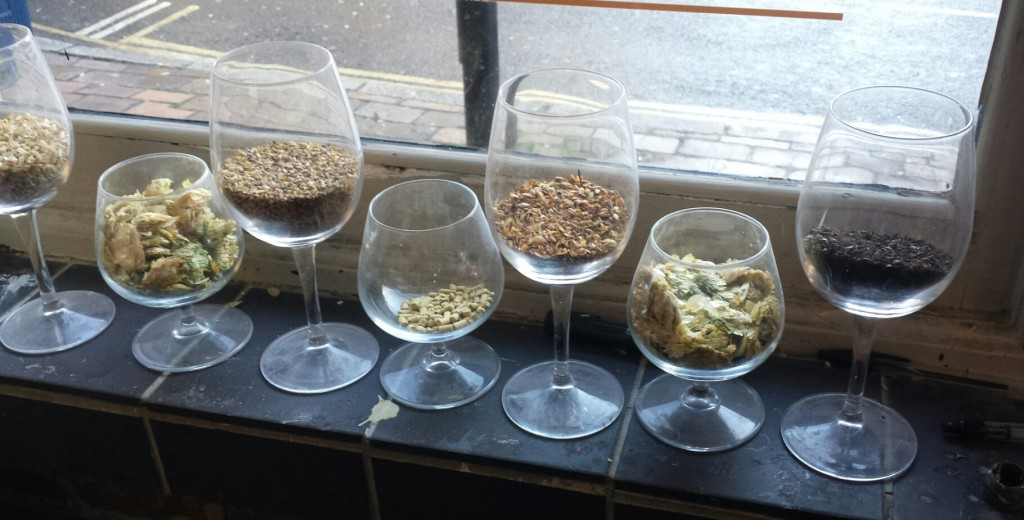 Thomas normally makes a total of 12 different Brewhouse beers and there are 6 different beers available at any one time although there are one-off brews as well. During the day, as you can appreciate, there is a bit of downtime whilst things are boiling etc. and this time wasn’t put to waste – we tried all the beers that were available and also had some lunch (which was included in the Brew Day experience). Personally, I particularly enjoy the darker ales, there was a dark IPA called Black Swan and a very good porter, the name of which escapes me. The lighter styles of Sexton and Matcham’s (named after the architect, Frank Matcham, who designed the theatre next door) were also very good. At the end of the day each person is allowed to pick a 5 litre mini-keg from a selection of whatever beers are available at the time, or you can come back in about 20 days time and pick up a mini-keg of the beer that you actually made on the day. I chose a mini-keg of Staggersaurus, an IPA abv 4%. (my colleagues chose a Matcham’s and the Guildhall we had a hand in making). This is from a range of beers that Thomas makes for a Portsmouth company called Staggeringly Good. Their dinosaur-themed range of bottled beers also includes Thai-Ranno Citrus IPA flavoured with kaffir lime leaves and Post Impact Winter Darkness and Extinction Black IPA – both flavoured with chili, the Extinction is the strongest.