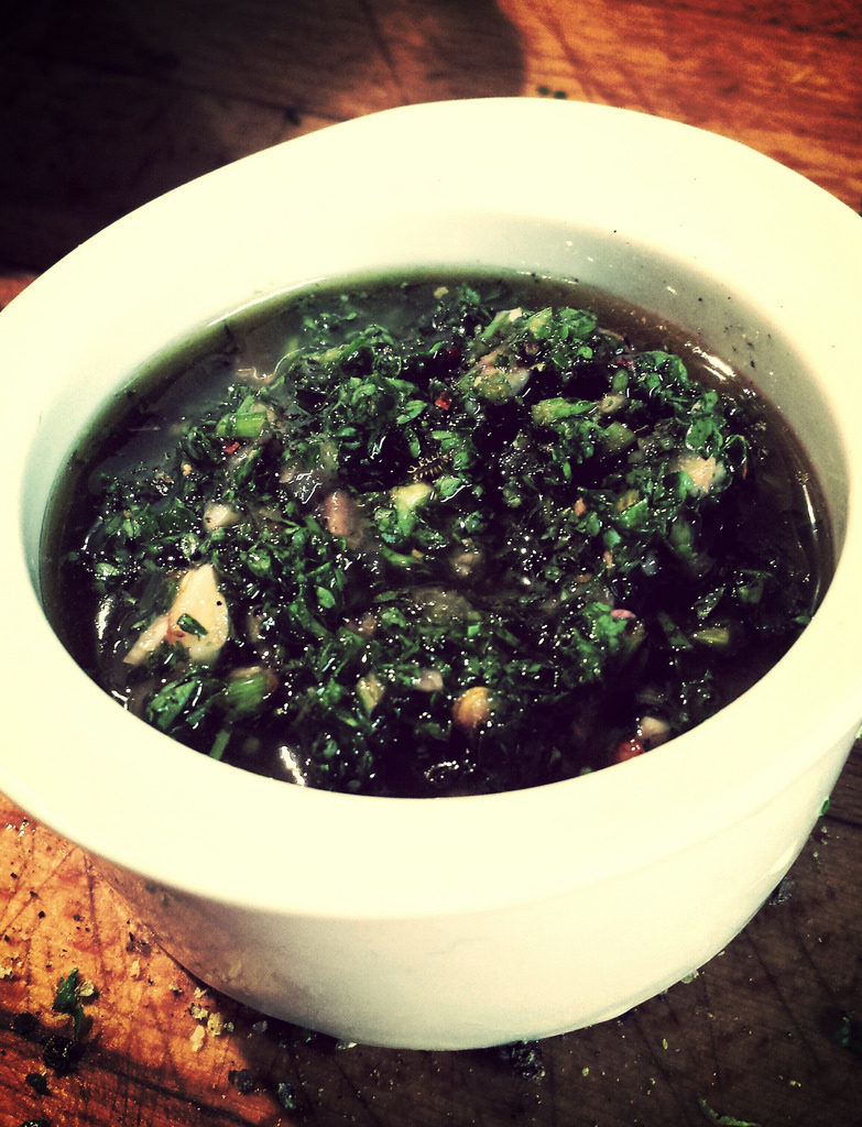 Chimichurri Sauce can be considered to be Argentina’s national steak sauce. It is basically chopped parsley, minced garlic, olive oil, oregano, and white or red wine vinegar – so perhaps it can be considered to be a sort of vinaigrette. Sometimes various additions are made such as cumin, thyme, lemon etc. Some people put some finely chopped onion in too. You can also make a red Chimichurri with the addition of tomato and red pepper. It is not really a very complicated sauce.