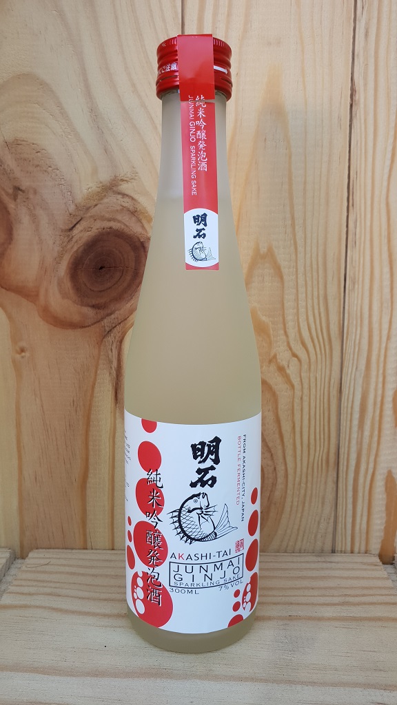 Akashi Tai Junmai Ginjo Sparkling Sake is made using only locally grown rice from the Hyogo Prefecture. Ginjo is a premium type of Sake made with rice that has to have at least 40% of the outside of the rice grains (the bran) polished away. Junmai means no distillers alcohol is added which it can be in other Sakes e.g. Honjozo Sake. The Sake undergoes a careful, low temperature fermentation and it is then undergo a secondary fermentation in the bottle with some more koji (the fungus used in fermentation process) to produce the fizz. The sake is carefully fermented at low temperature and it is allowed to undergo a secondary fermentation in the bottle with some more koji (the fungus used in fermentation process).