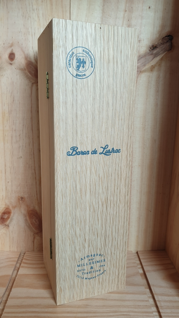 Baron de Lustrac 1960 Vintage Armagnac is presented in an old-fashioned Armagnac bottle and wooden gift box. Only available in very limited quantities.