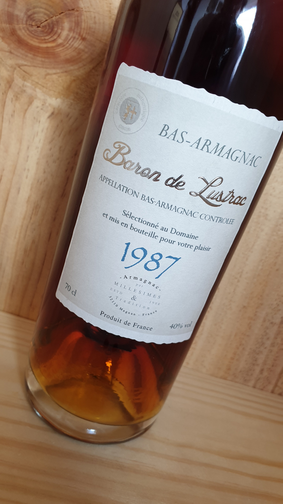 Baron de Lustrac 1987 Vintage Armagnac – a perfect birthday present for anyone born in 1987. Or perhaps you know someone celebrating a wedding anniversary from 1987.