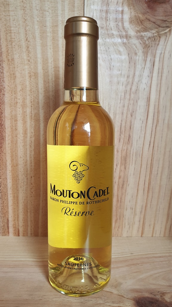 The 2016 Baron Philippe de Rothschild Mouton Cadet Reserve Sauternes  is 88% Semillon, 10% Sauvignon Blanc and 2% Muscadelle.