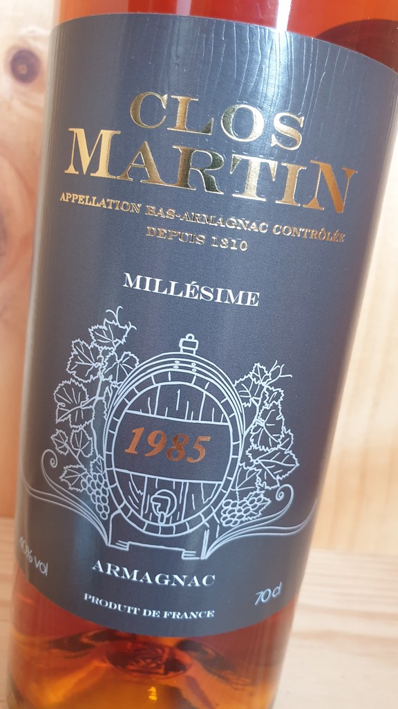 Clos Martin 1985 Vintage Armagnac has a nose which is quite floral and spicy with oaky notes and some dried fruit and violets. Big, full in the mouth with youthful oak and tannin, softening to show some spice, vanilla and a touch of orange zest.