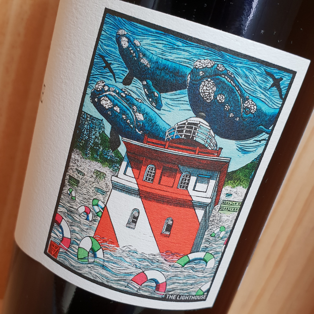 This range of wines is inspired by Cape Town’s radiant energy and creative demeanour and the labels feature artwork by Capetonian artist Theo Vorster. This one features the cheery red and white candy-striped lighthouse in Green Point with its foghorn, affectionately known as “Moaning Minnie”.