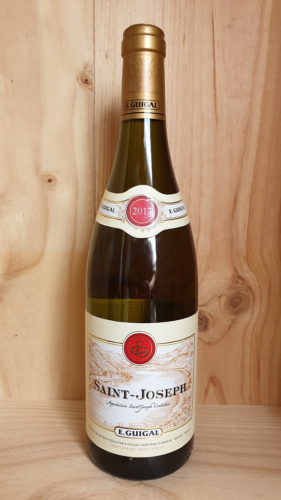 E. Guigal Saint Joseph Blanc is a French white wine made Saint Joseph Appellation d’Origine Contrôlée (AOC) in the northern Rhône wine region of France. Although Saint Joseph is primarily a red wine appellation making wines from the Syrah grape, there is a small amount of white wine made and up to 10% white grapes (Roussanne or Marsanne) can go into the red wine blends.