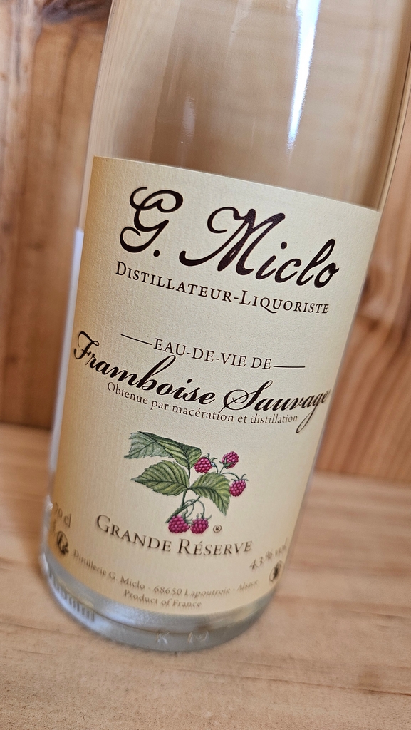 G. Miclo Framboise Sauvage Eau de Vie Grande Reserve is a wild raspberry spirit made in Alsace.