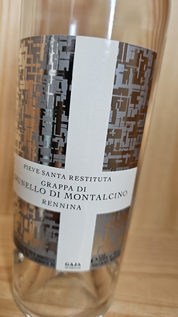 Gaja Grappa di Brunello di Montalcino Rennina is made from 100% Sangiovese grape pomace from the family’s Pieve Santa Restituta estate. Pieve Santa Restituta is named after a tiny fourth-century church on a hill towards the south of the Montalcino appellation.