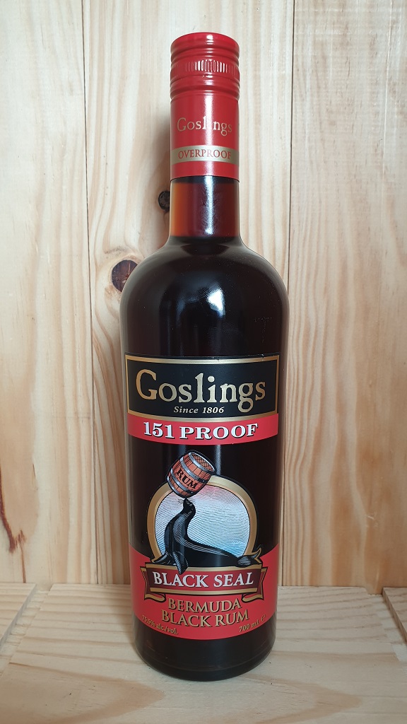 Goslings Black Seal 151 Proof Bermuda Rum is the overproof version of this famous Bermudan rum. This was first launched in 2005 as a high proof rum use behind the bar, in cocktails and for desserts that call for flaming such as the classic Bananas Foster.
