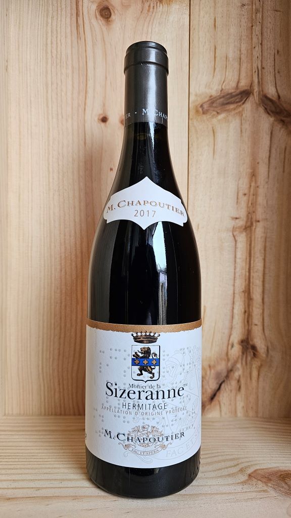 M. Chapoutier Hermitage Monier de la Sizeranne is a red wine from the Rhone. The name, “Monier de la Sizeranne” comes from the name of an important Tain l’Hermitage family. This family also owned the “La Sizeranne” vineyard. The bottle label displays a lion, which is the Sizeranne family crest.