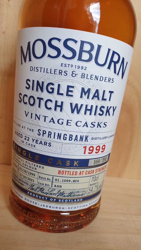 Mossburn Single Cask Springbank 1999 was distilled in October 1999 and bottled as a 22 year old in October 2021.