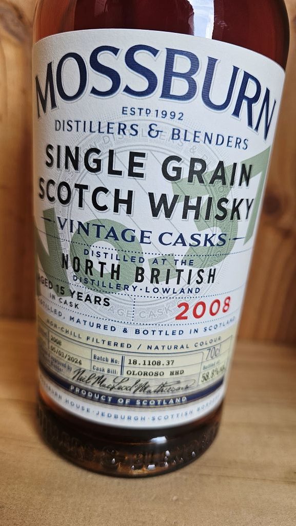 Mossburn Vintage Casks #37 North British was distilled in 2008 and bottled in March 2024 as a 15 Year Old Whisky. It was finished in ex-Oloroso Sherry hogheads.