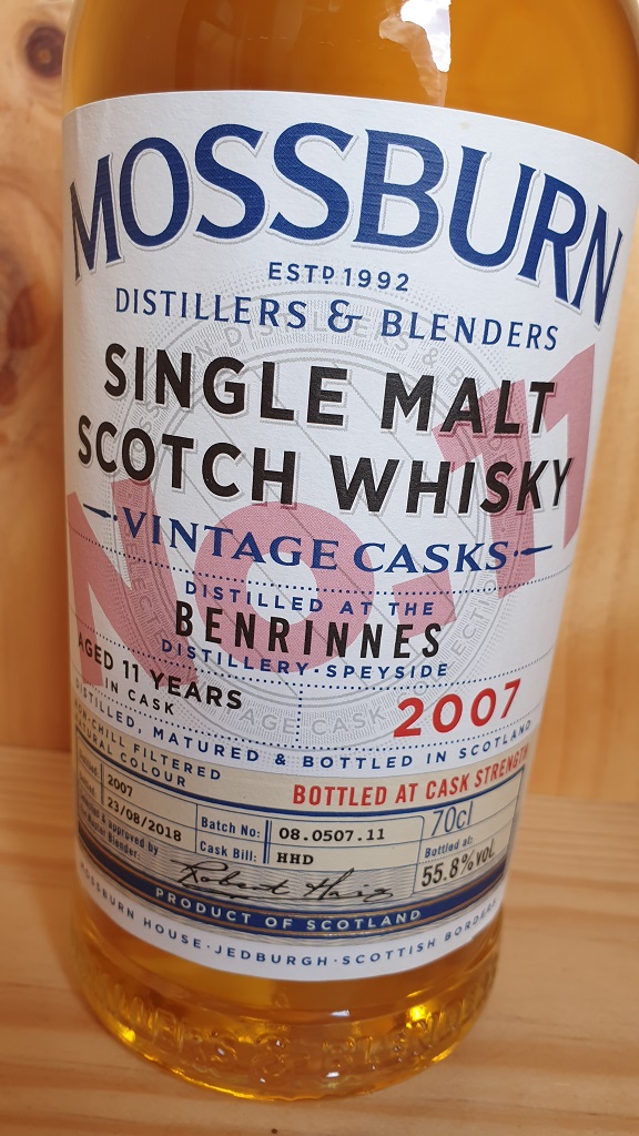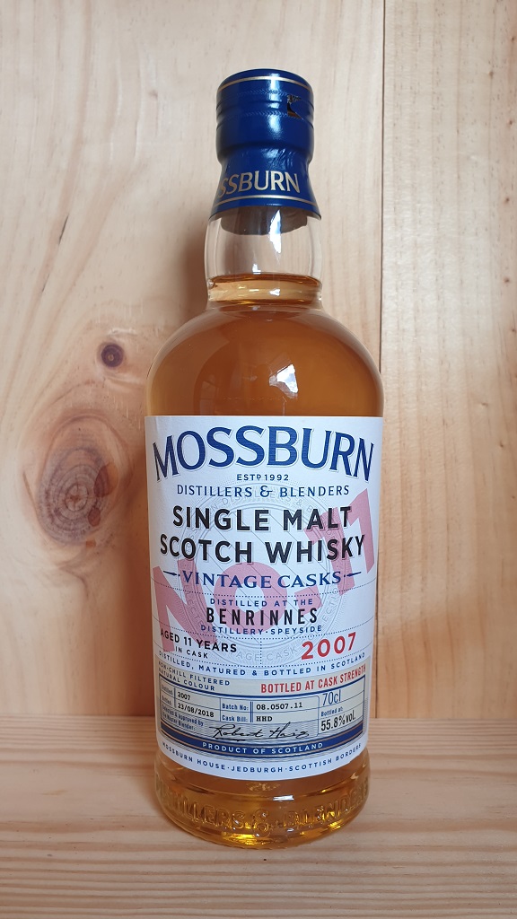 Mossburn Vintage Casks No 11 Benrinnes 2007 was distilled in 2007 and bottled at a cask strength of 55.8% ABV in 2018 as an 11 year old whisky without any colouring or chill filtration.
