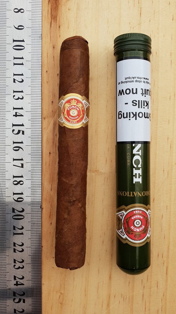 The tobacco in the Punch Cigars is all sourced from the Vuelta Abajo zone and “totalmente a mano, tripa larga” – long filler, totally handmade. The Punch Coronation cigar is A good-sized, medium-bodied cigar if you have a good half an hour to 45 minutes or so spare.