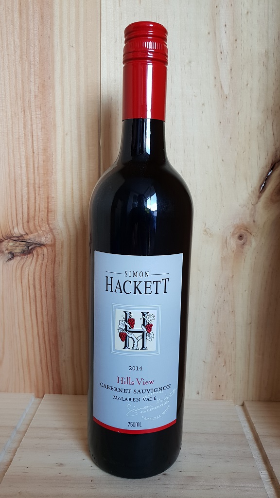 Simon Hackett Hills View Cabernet Sauvignon is 100% Cabernet Sauvignon aged 10 months in 2nd fill American oak barrels.