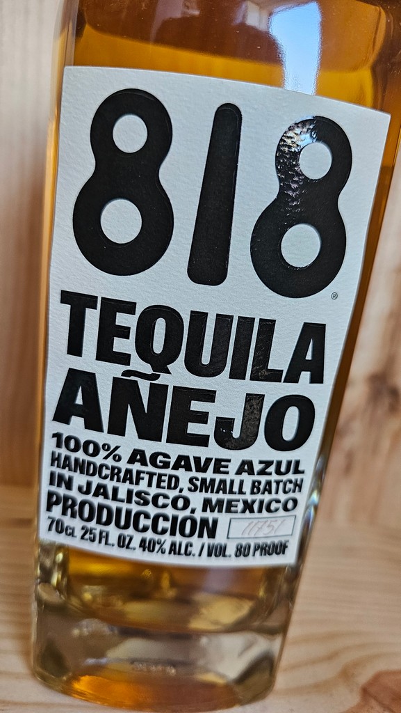 Tequila 818 Anejo is made from made from 100% Blue Weber Agaves and is aged for a minimum of 12 months in American oak barrels. They also produce a Blanco , a Reposado and the Eight Reserve.
