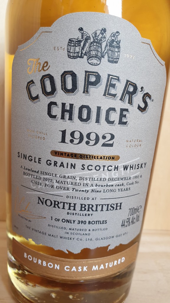 The Coopers Choice North British 1992 Single Grain Scotch Whisky 44.5% is a third party independent bottling of Lowland single grain whisky. This is a very limited single cask bottling with only 390 bottles produced. Single Grain whisky of this age is quite a rarity.