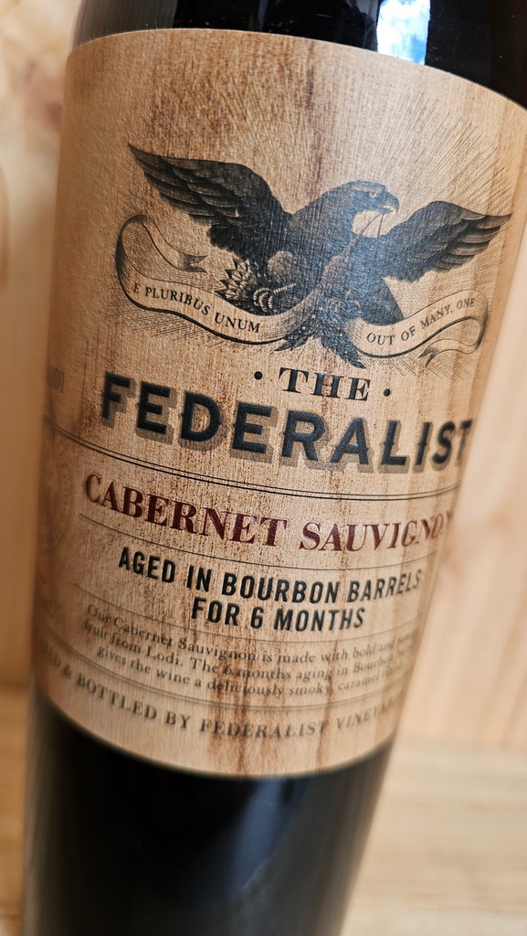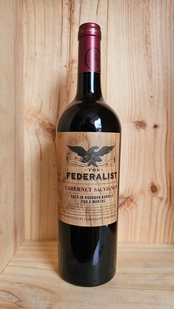 The Federalist Bourbon Barrel Aged Cabernet Sauvignon is a red wine made from grapes sourced from the Lodi AVA of California. It is aged for 6 months in Bourbon barrels. The Federalist Cabernet Sauvignon intertwines bold fruit with rich, toasted vanilla and spice notes with a smoky caramel finish.