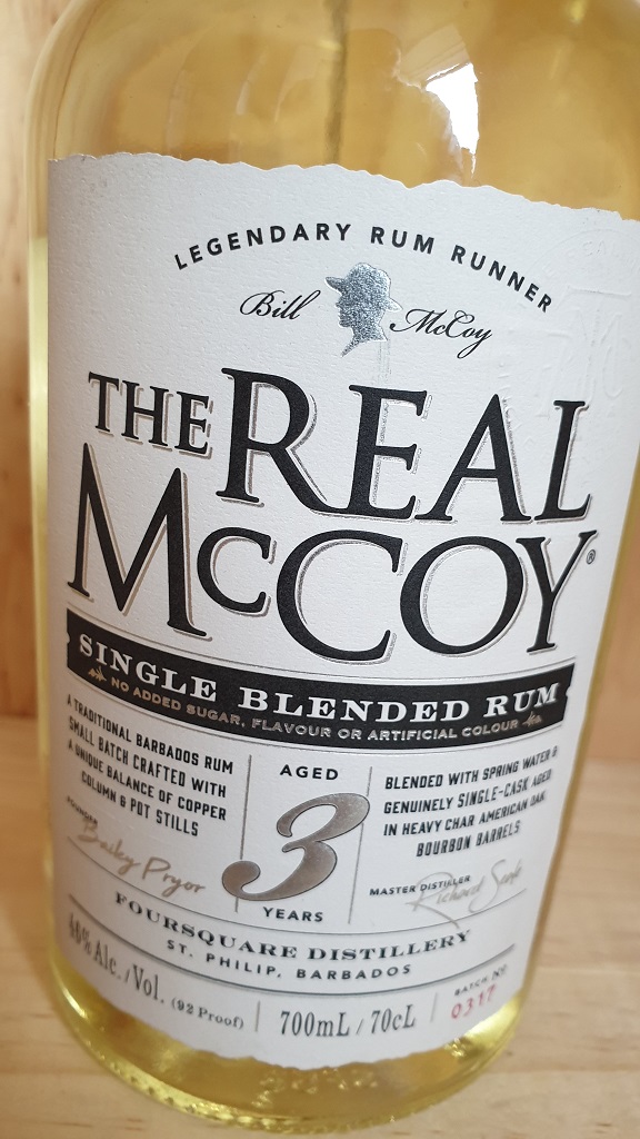 This is a single blended rum, which means it is a blend of pot and column still rums from a single distillery. Read more about the proposed Gargano / Seale classification of rum here. The Real McCoy 3 Year Old White Rum is aged or 3 years in heavy char ex Bourbon American oak casks which produces a very light amber colour. The colour is removed by a charcoal filtration whilst leaving the complex flavours and aromas intact.