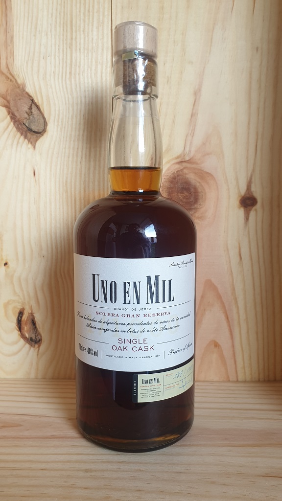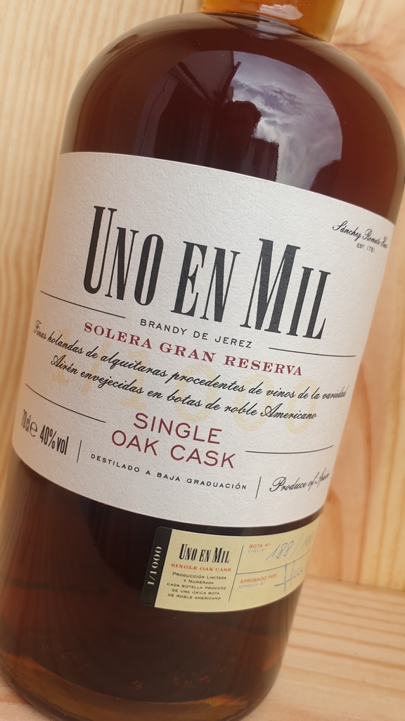 The current bottling of Sanchez Romate Uno en Mil is from cask 188 or 188/1000. Bottled at 40%.